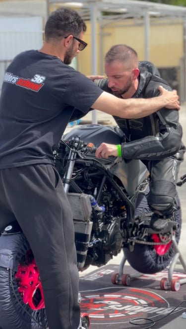 Siamo una scuola altamente professionale. Affidandoti a noi non troverai gruppi numerosi di piloti, poiché ci concentriamo principalmente su sessioni one-to-one o, al massimo, di due piloti per l'intera giornata. Il nostro obiettivo è aiutarti a migliorare la tua tecnica di guida, rendendoti più sicuro in sella alla moto e permettendoti di superare i tuoi limiti.